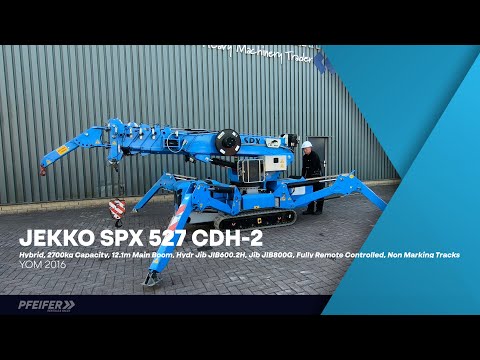 Manufacturer: Jekko Typ: SPX527CDH-2 Manuf. year: 2016 Fuel: Hybrid Serial nr: AMC2213 Loading / lifting capacity: 2.700 kg Max boom lenght: 12.1 m Lifting Height: 18.5 m Horizontal Reach: 11.2 m JIB800G JIB600.2H 3t Hookblock * Radio control * Plug & Play connection (PPA) * Loading moment indicator (LMI) * 2 driving speeds. All necessary documents and papers. CE (Declaration of Conformity). More detailed pictures / product movie on our website. pfeifermachinery.com Above specifications are subject to change without prior notice and subject to errors.